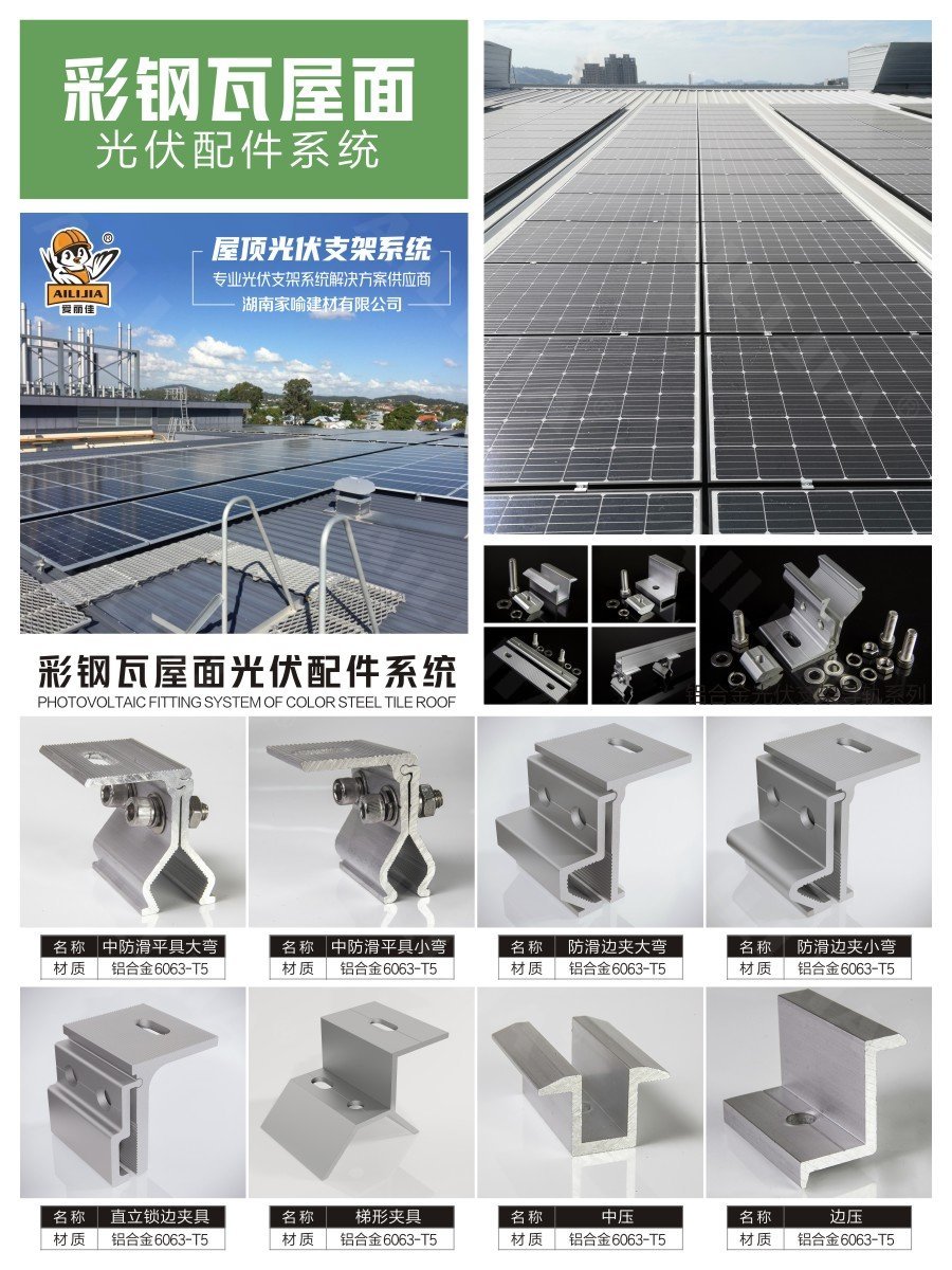 我們是(shì)一(yī)家(jiā)太陽能(néng)角馳彩鋼瓦鋁夾具廠(chǎng)家(jiā),我們提供各種不(bù)同的(de)彩鋼瓦屋頂類型的(de)屋頂夾具。為(wèi)您$提供最具競争力的(de)價格和(hé)最好(hǎo)的(de)服務。